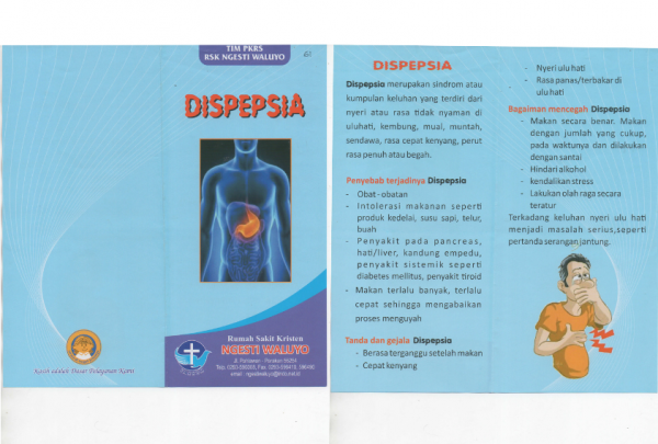 Dispepsia merupakan sindrom atau kumpulan keluhan yang terdiri dari nyeri atau rasa tidak nyaman di ulu hati, kembung, mual, muntah, sendawa, rasa cepat kenyang, perut rasa penuh atau begah.