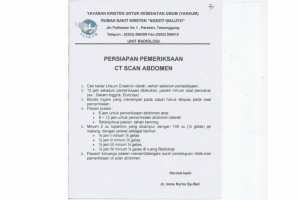 Persiapan CT Scan CT SCAN ABDOMEN Puasa total selama 6 jam sebelum pemeriksaan (tetap diijink
