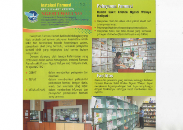 Dengan didukung oleh tenaga kefarmasian yang profesional dalam aspek managemen. Instalasi Farmasi Rumah sakit Kristen Ngesti Waluyo siap melayani anda, dengan