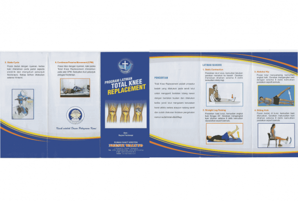 6. Continous Passive Movement (CPM) Posisi tidur dengan nyaman, kaki paska Total Knee Replacement diletakkan pada alat CPM. Kemudian ikuti petunjuk petugas fisioterapi.