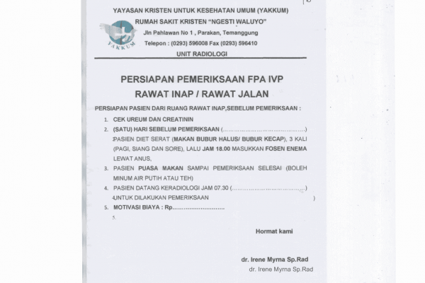 Persiapan pemeriksaan FPA IVP ranap rajal