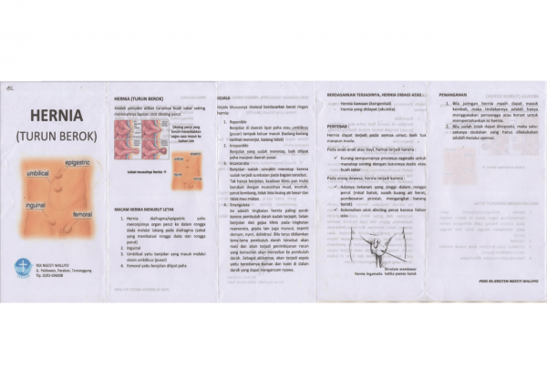 1. Bila jaringan hernia masih dapat masuk kembali, maka tindakannya adalah hanya menggunakan penyangga atau korset untuk mempertahankan isi hernia